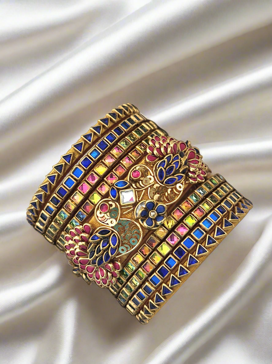 Luxurious Kundan Bridal Bangle Set - Square Bouquet