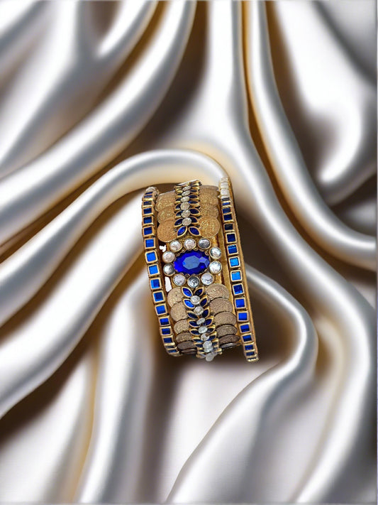 Blue Silk Thread Kundan Bangles Coin Set(Blue and Silver Coin Set)