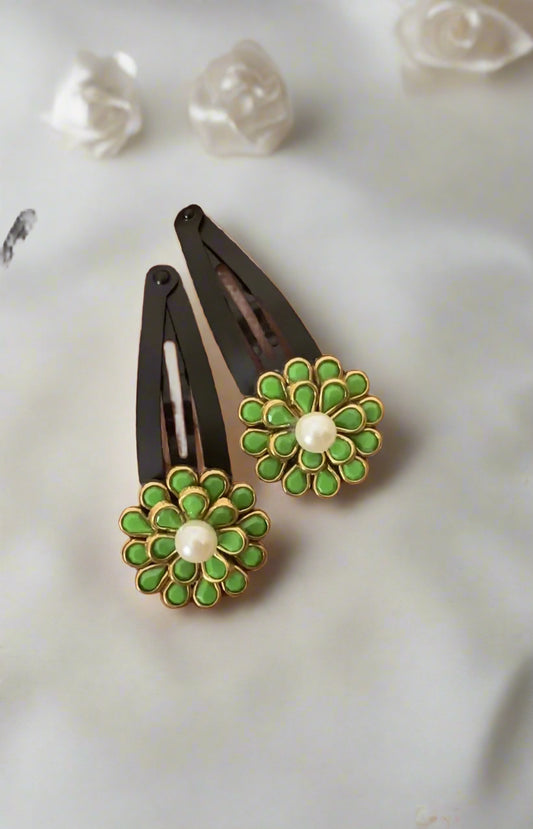 Green and Red 3D Flowers Tic Tac Kundan Clip