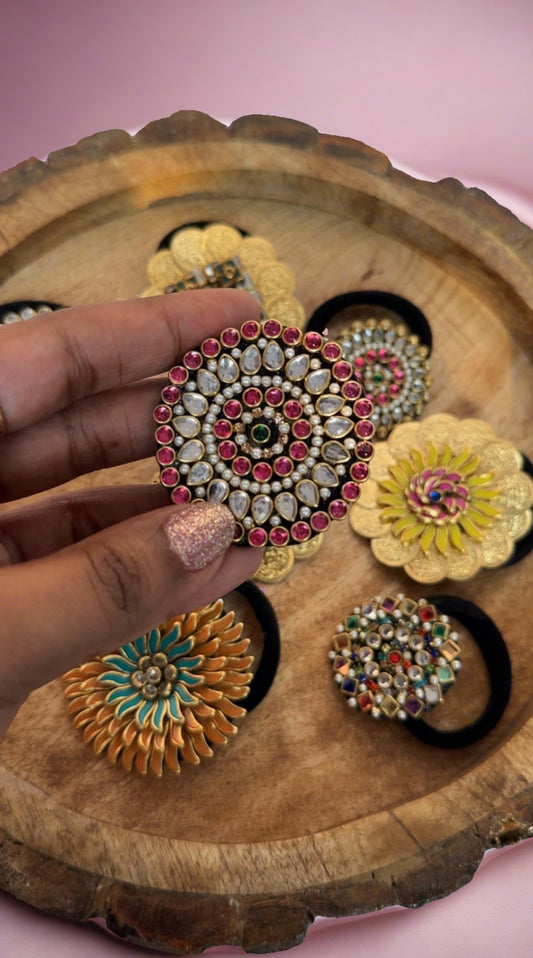Traditional Lakshmi Charam Kundan Rubber Band/Hair Tie