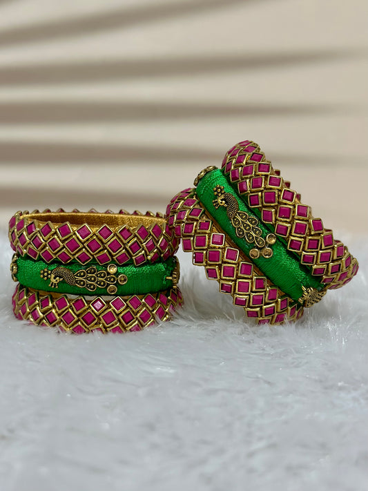 Silk Thread Kada Kundan Minimalist Bangle Set