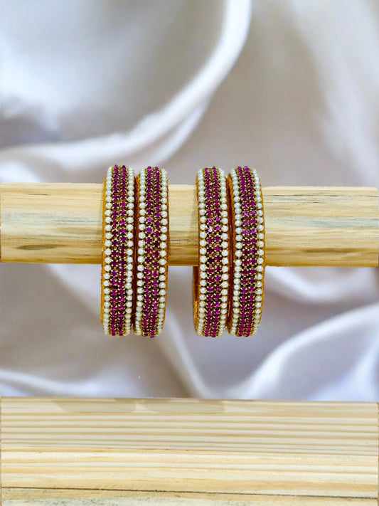 Pearls and Stones Silk Thread Kada Bangles(Onion Pink and Pearl White Stones)