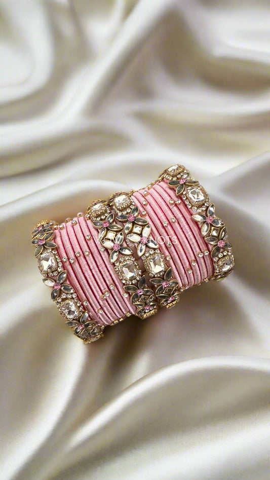 Multicolour Matt Finish Silk Thread Kundan Bangles(Triangle Shaped Matt Multicolour Kundans)