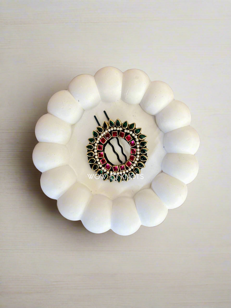 Green and Pink Celestial Bloom Hair Brooch/Jada Billa